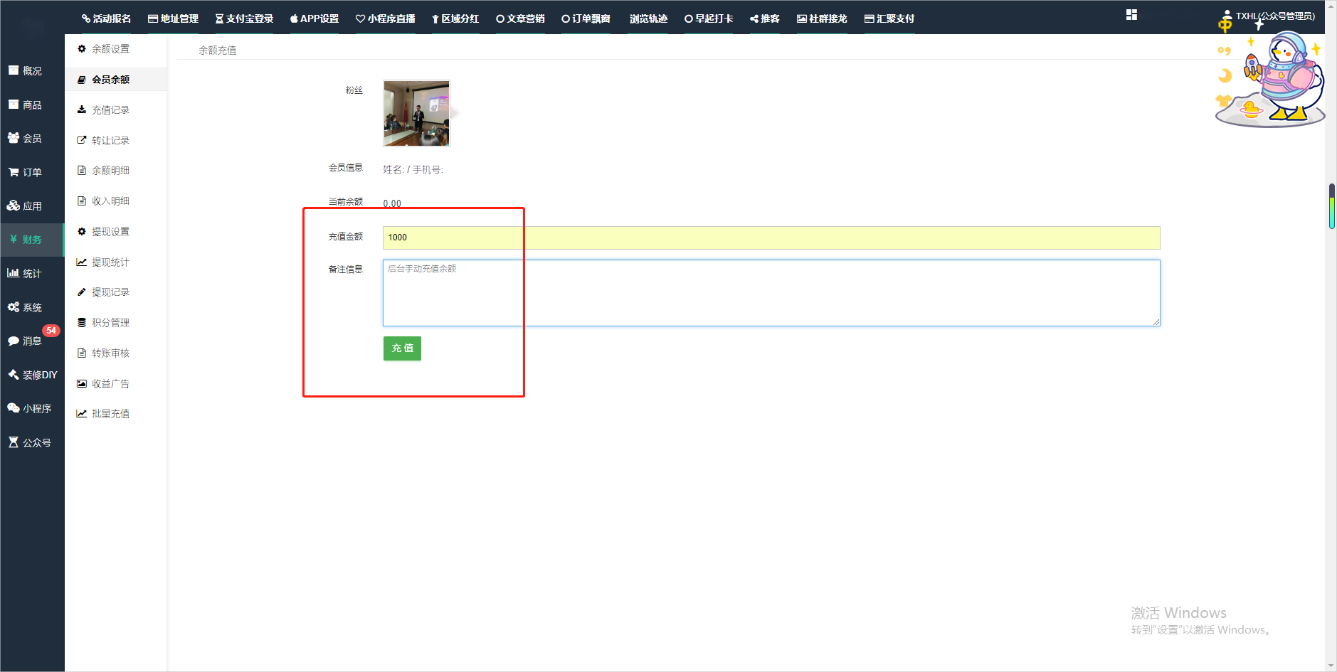 目录 搜索 展开 一、前期准备资料二、数字乡村码-上线操作指南1、服务号的申请流程及认证2、申请小程序流程3、开放平台绑定小程序和公众号三、数字乡村码-系统操作数字乡村码系统管理-概况数字乡村码-商品管理1、发布商品2、商品列表3、商品表单4、商品分类5、品牌管理6、配送模板7、评论管理8、优惠券管理9、商品标签10、退货地址设置11、满额优惠12、批量操作13、配送方式14、基础设置15、商品隐藏四、数字乡村码-会员管理1、全部会员2、会员等级3、会员分组4、资格申请5、会员设置6、推广中心设置7、会员邀请码8、会员关系链修改关系链修改记录9、会员合并记录10、账号注销管理11、会员设置中心五、数字乡村码-订单管理1、订单管理列表2、订单处理流程3、订单状态4、订单修改价格5、订单退款退货6、多包裹发货7、批量发货订单操作步骤8、催发货订单9、物流查询六、数字乡村码-财务管理1、余额设置2、会员余额3、充值记录4、转让记录5、余额明细6、收入明细7、提现设置8、提现统计9、积分管理10、转账审核11、收益广告12、批量充值七、数字乡村码-系统管理1、商城入口2、商城设置①、商城设置②、订单设置③、物流查询④、短信⑤、联系方式⑥、分类⑦、优惠券⑧、分享⑨、幻灯片⑩、广告位⑫、地图设置3、交易设置4、微信模板消息自定义消息模板(新版)自定义消息模板(旧版)小程序消息模板公众号模板消息变更公告5、语言设置6、权限管理7、多媒体管理八、数字乡村码-消息管理九、数字乡村码-应用管理十、数字乡村码系统-数据统计十一、数字乡村码-页面装修DIY1、模板管理2、店铺页面3、顶部导航4、底部导航5、DIY模板市场6、首屏广告7、基础设置8、装修DIY尺寸建议十二、供应商功能插件操作指南1、供应商2、门店-收银台门店申请和使用步骤门店管理①、门店-收银台 营销设置②、门店-收银台 分润设置门店分类门店申请门店审核门店商品门店商品订单收银台订单数据统计核销员基础设置默认设置门店装修3、微社区4、会务活动十三、营销插件操作指南活动报名提货卡新人奖微店问卷调查积分视频分享1、视频分享基础设置2、视频分享发现管理3、视频分享分类管理4、视频分享评论管理5、视频分享分红记录6、视频分享短视频中心每日红包幸运大抽奖签到优惠券二维码任务奖励优惠劵文章音频文章付费文章限时购新海报拓客卡操作流程积分活动素材中心视频红包十四、入驻门店应用类1、门店预约2、附近商品3、门店定位设置4、门店控制5、门店满额包邮6、门店满额减7、导入商品8、门店搜索9、门店股东10、核销券11、多门店核销1、商城后台设置2、前端功能演示十五、常见问题1、后台登录密码修改流程2、会员-余额,积分,后台如何进行充值与扣除3、如何修改上下级关系4、一种万能的获取商城小程序路径的方法 暂无相关搜索结果! 阅读次数:1640 本文档使用 模王系统 发布 2、会员-余额,积分,后台如何进行充值与扣除 会员-余额,积分,后台如何进行充值与扣除一.如何进行余额充值-扣除1.财务-会员余额-搜索会员昵称-右边点击充值余额2.扣除余额,只需要在充值金额前加上 - 号;比如充值-100,等于扣除100余额二,如何手动充值积分-扣除积分(充值与扣除逻辑跟余额是一样的)文档更新时间: 2024-01-05 14:28 作者:链上旅行
